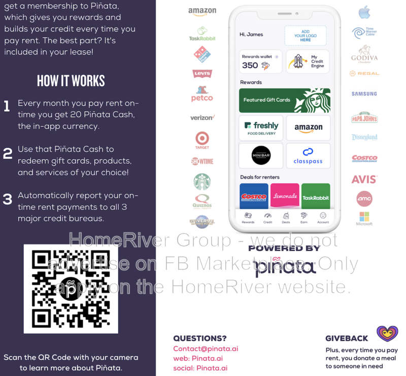 HomeRiver Group has partnered with Termwise to offer an affordable alternative to an upfront cash security deposit. Eligible residents can choose between paying an upfront security deposit or replacing it with an affordable Termwise monthly security deposit waiver fee. For more information, ask your leasing agent or visit https://www.findigs.com/blog/skip-the-deposit-with-termwise-a-new-way-to-secure-your-rental.